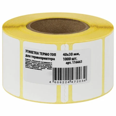 Этикетка ТермоТоп (40х30 мм), 1000 этикеток в ролике, светостойкость до 12 месяцев, 116663, 56213