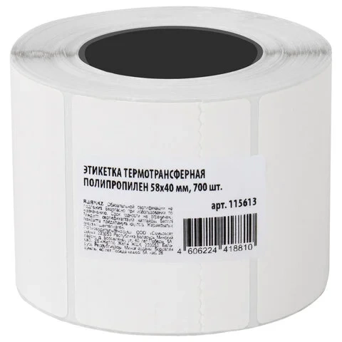 Этикетка термотрансферная ПОЛИПРОПИЛЕНОВАЯ (58х40 мм), 700 этикеток в ролике, 115613