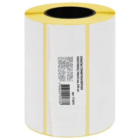 Этикетка термотрансферная ПОЛУГЛЯНЕЦ (100х50 мм), 500 этикеток в ролике, 115610