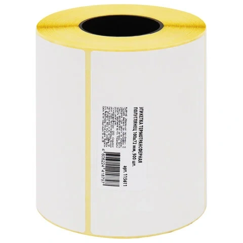 Этикетка термотрансферная ПОЛУГЛЯНЕЦ (100х72 мм), 500 этикеток в ролике, 115611