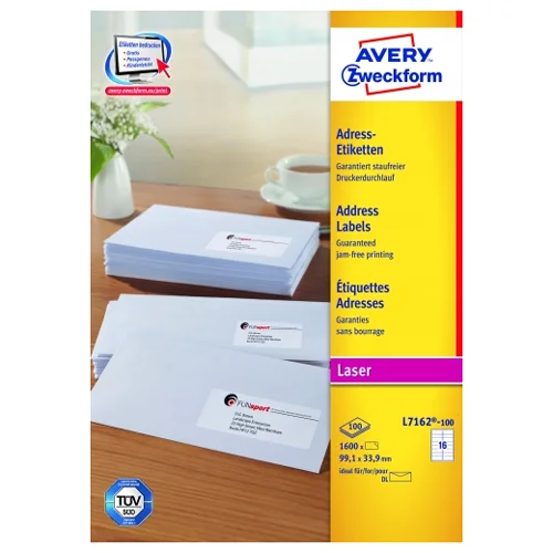 Этикетки адресные Avery Zweckform L7162-40, белые, 99.1х33.9мм, 16шт на листе, 40листов