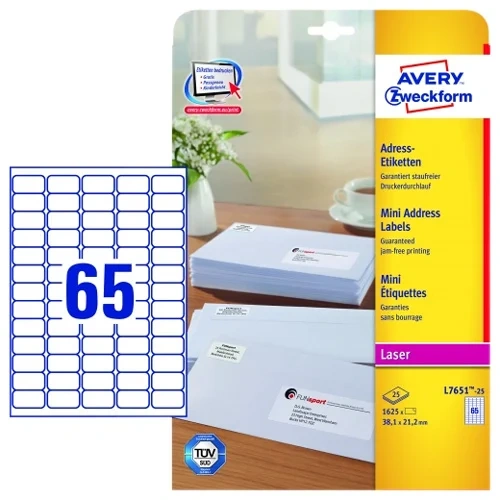 Этикетки адресные Avery Zweckform L7651-25, белые, 38.1х21.2мм, 65шт на листе, 25листов