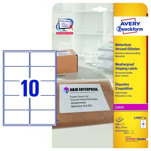 Этикетки адресные Avery Zweckform L7992-25, белые, 99.1х57мм, 10шт на листе, 25листов