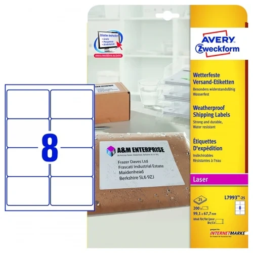 Ваши письма и посылки предназначены для дальней отправки? И вам необходимо убедиться, что к моменту доставки упаковка не испортится, а информация с адресом не смажется? Всепогодные этикетки от Avery особо прочные и устойчивые к воздействию загрязняющих веществ, влаги и перепадов температуры. Идеальное решение для маркировки в экстремальных условиях, где обычная бумага справиться неспособна.