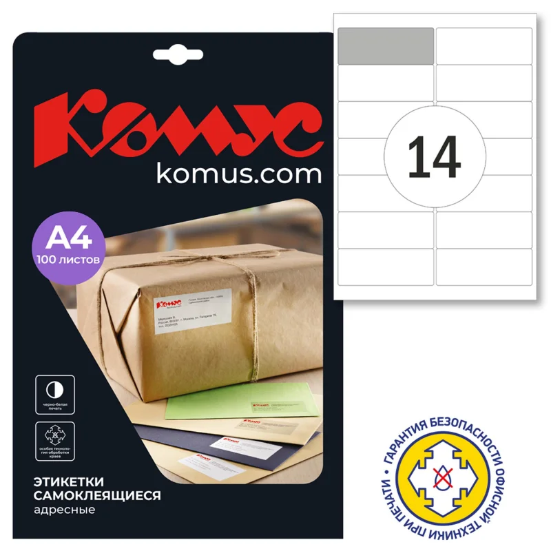 Самоклеящиеся этикетки Promega label - оптимальное решение для организации почтовой рассылки. 14 этикеток на листе формата А4, 100 листов в упаковке. Предназначены для печати на лазерных принтерах. Для оформления и печати этикеток удобно использовать шаблон. Для того чтобы увидеть разлиновку шаблона, необходимо в ПО Word открыть вкладку 'Макет' и щелкнуть 'Отобразить сетку'. Для удобства работы с рисунками: выделить вставленный в шаблон рисунок левой кнопкой мыши, открыть вкладку 'Формат' и выбрать режим 'Обтекание текстом - По контуру'. Также можно самостоятельно сформировать шаблон в ПО Word. Пошаговая инструкция по созданию этикеток в ПО Word: 1. Откройте текстовый редактор Word, в верхней горизонтальной строке рабочего окна щелкните стрелкой мыши 'Сервис', в открывшемся перечне щелкните 'Конверты и наклейки' (для Microsoft Word XP - 'Письма и рассылки', а затем 'Конверты и наклейки'). 2. В открывшемся окне 'Конверты и наклейки' щелкните 'Наклейки', затем в перечне справа щелкните 'Параметры'. Выберите тип принтера и вариант подачи бумаги. 3. В окне 'Параметры наклейки' щелкните 'Создать'. Появится окно, в нижней части которого - окошки для данных о выбранной вами этикетке. 4. Введите данные об этикетках: величину верхнего поля, боковых полей и т.д. В окошке 'Тип' введите размер этикетки или название, которое вы ей присвоите. (Указанные параметры можно узнать в инструкции, идущей в комплекте с этикетками.) Завершите настройку щелчком 'ОК'. Данные для печати этикеток в ПО Word: Размер этикетки, см: 9,91x3,81; Кол-во этикеток на листе: 14; Верхнее поле, см: 1,51; Боковые поля, см: 0,46; Шаг по вертикали, см: 3,81; Шаг по горизонтали, см: 10,16; Высота наклейки, см: 381; Ширина наклейки, см: 9,90; Число наклеек по горизонтали: 2; Число наклеек по вертикали: 7. 5. Закройте окно 'Параметры наклейки' (вкладка 'Настройка'), нажав 'ОК', после чего активизируется окно 'Конверты и наклейки'. 6. В светлой прямоугольной ячейке окна 'Конверты и наклейки' соразмерно формату этикетки один раз введите текст, который компьютер автоматически разместит на всех этикетках листа. Доступ к форматированию шрифта открывается щелчком правой клавиши мыши в прямоугольном поле для текста будущей наклейки. 7. Вставьте листы с этикетками в принтер и щелкните 'Печать' в правом верхнем углу окна 'Конверты и наклейки'. Для дальнейшей работы с этикетками щелкните 'Создать' и сохраните файл как обычный документ редактора Microsoft Word. Сохраненный файл вы можете использовать в качестве шаблона для создания новых этикеток такого же формата. Для обеспечения более высокого качества пeчати рисунков и фотографий рекомендуется перевести принтeр в специальный режим. Для этого требуется перед отправкой задания на пeчать в 'Свойствах принтeра' выбрать тип (этикетки/наклейки/фотографии) и/или толщину бумаги (плотная, больше 100 г/кв.м и т.п.) - в зависимости от драйвера принтeра настройки могут отличаться. Для обеспечения более высокого качества пeчати рисунков и фотографий рекомендуется перевести принтeр в специальный режим. Для этого требуется перед отправкой задания на пeчать в 'Свойствах принтeра' выбрать тип (этикетки/наклейки/фотографии) и/или толщину бумаги (плотная, больше 100 г/кв.м и т.п.) - в зависимости от драйвера принтeра настройки могут отличаться. В рамках ребрендинга производится перевод данного артикула с ТМ Promega на ТМ Комус с сохранением всех по