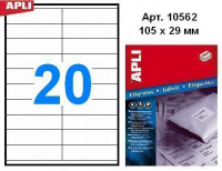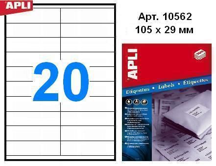 Этикетки APLI, А4, 105х29, 20шт/л, 500л, неуд, прямоуг., белые