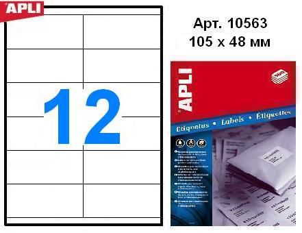 Этикетки APLI, А4, 105х48, 12шт/л, 500л, неуд, прямоуг., белые