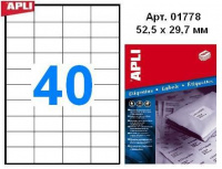 Этикетки APLI, А4, 52,5х29,7, 40шт/л, 500л, неуд, прямоуг., белые