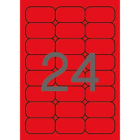 Этикетки APLI, А4, 64х33,9, 24шт/л, 20л, неуд, закруг., флюор красные