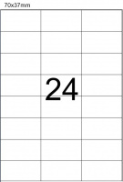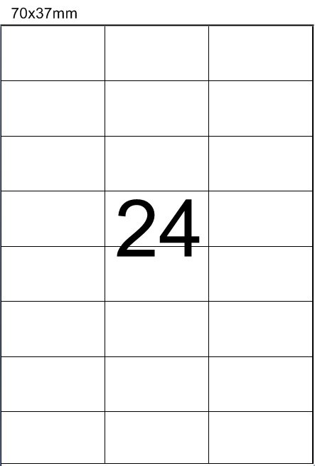 Самоклеящиеся наклейки прямоугольной формы на листах формата А4 по 24 этикетки. Отличаются высокой плотностью. Для струйных, лазерных принтеров и копиров. Идеально подходит для коррекции цены, штрих-коды, адреса и т. д.