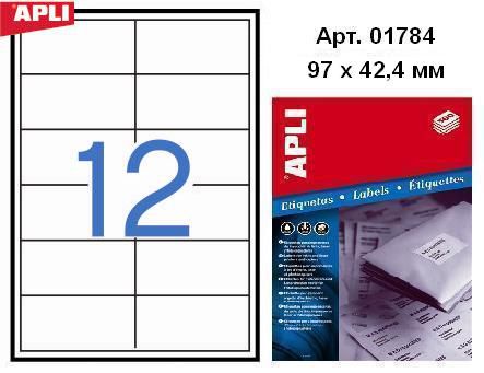 Этикетки APLI, А4, 97x42,4, 12шт/л, 500л, неуд, прямоуг., белые