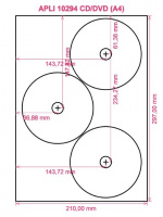 Этикетки APLI, А4, СD-DVD d=114, d=18, 3шт/л, 100л, неуд, белые