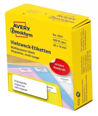 Этикетки Avery Zweckform 3831 38x14мм 400шт на листе/70г/м2/белый самоклей. универсальная
