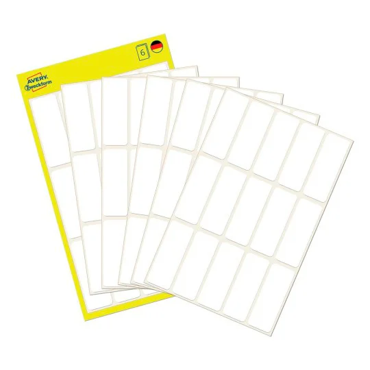 Белые мини-этикетки с перманентным клеем 3076 для оформления от руки формата 38x14 мм от AVERY ZWECKFORM. Идеально подходят для любой мелкой маркировки предметов, документов и файлов. В упаковке 90 шт.