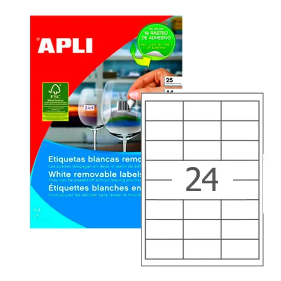 Этикетки белые удаляемые Apli 03056 64.6x33.8мм, 2400шт