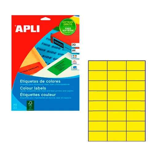 Этикетки цветные Apli 1591, 70x37мм, 480шт, желтые