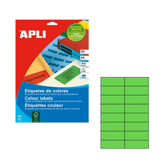 Этикетки цветные Apli 1598, 105х37мм, 320шт, зеленые