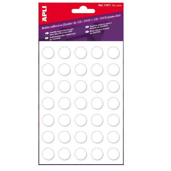 Этикетки для CD/DVD Apli 11671, d=15мм, 35шт, белые