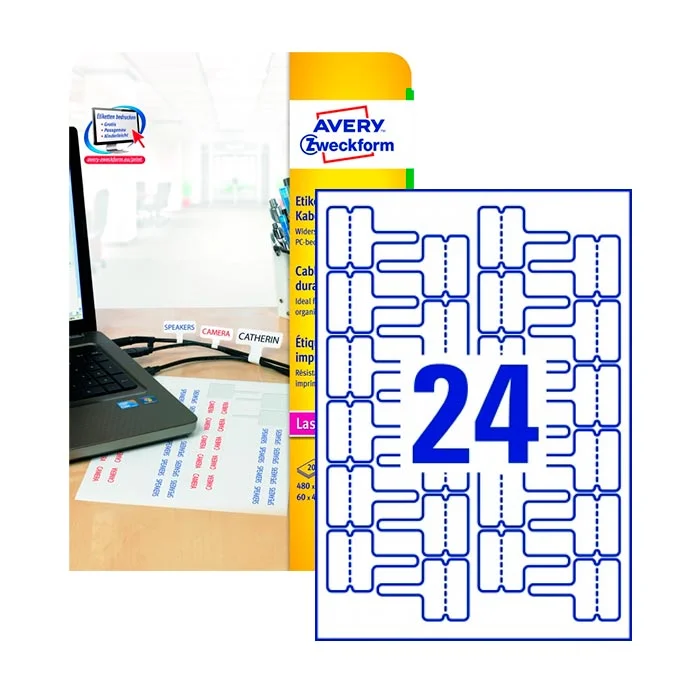 Этикетки для кабелей и проводов Avery Zweckform L7950-20, белые, 60х40мм, 24шт на листе А4, 20 листов