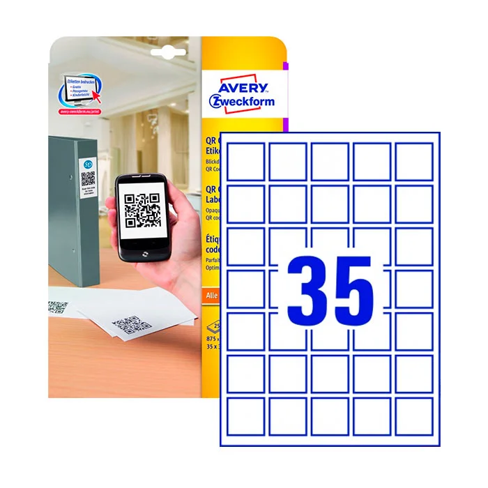 Этикетки для матричного кодирования Avery Zweckform L7120-25, белые, 35х35мм, 35шт на листе А4, 25 листов