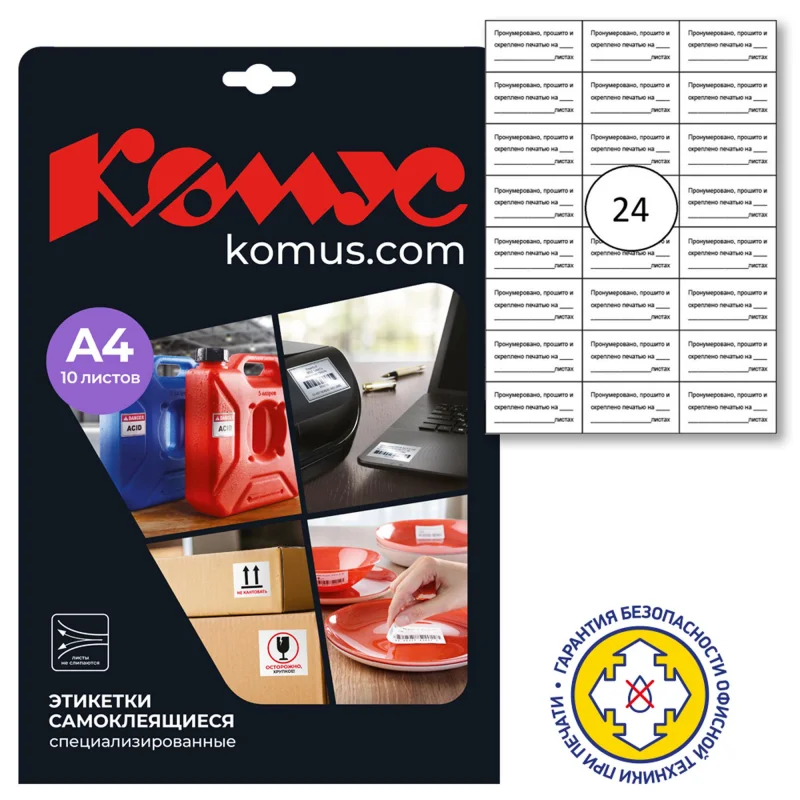 | Количество этикеток на листе | 24 шт |