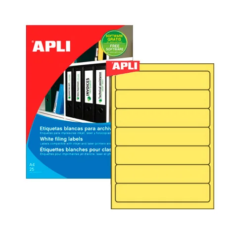 Этикетки для папок Apli 1370, 190х38мм, 140шт, желтые