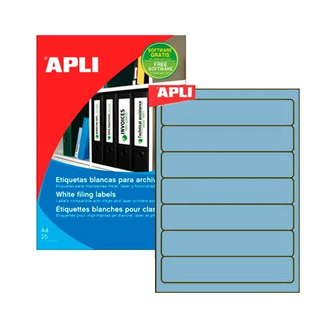 Этикетки для папок Apli 1371, 190х38мм, 140шт, голубые
