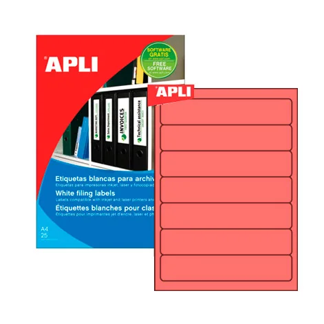 Этикетки для папок Apli 1372, 190х38мм, 140шт, красные