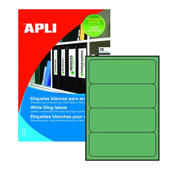 Этикетки для папок Apli 1377, 190х61мм, 80шт, зеленые