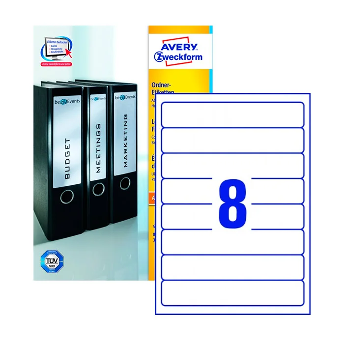 Этикетки для папок Avery Zweckform L6060-100, белые, 34х192мм, 8шт на листе А4, 100 листов