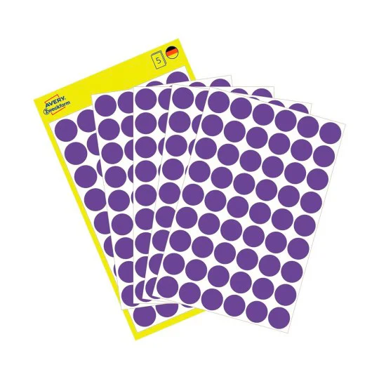 Сиреневые самоклеящиеся точки (арт. 3115) для маркировки диаметром 12 мм от AVERY ZWECKFORM. Идеальное решение для маркировки, организации расписания, сортировки, и планирования встреч. В упаковке 270 круглых клеящихся точках на листах.