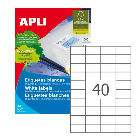 Этикетки самоклеящиеся Apli 03130 52.5х29.7мм, белые, 4000шт
