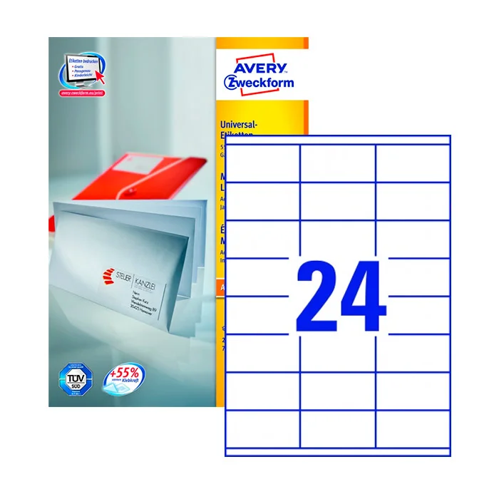 Этикетки самоклеящиеся Avery Zweckform 3422, белые, 70х35мм, 24шт на листе А4, 100 листов