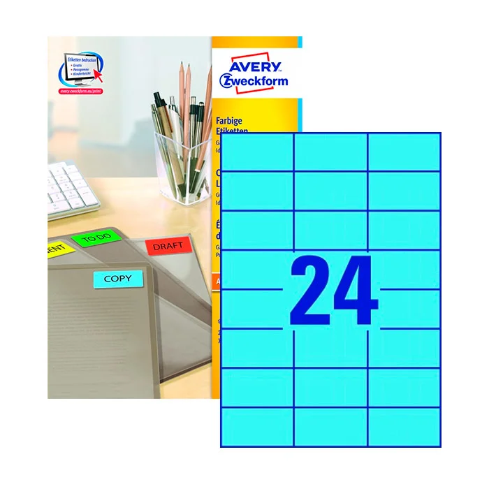 Этикетки самоклеящиеся Avery Zweckform 3449, голубые, 70x37мм, 24шт на листе А4, 100 листов