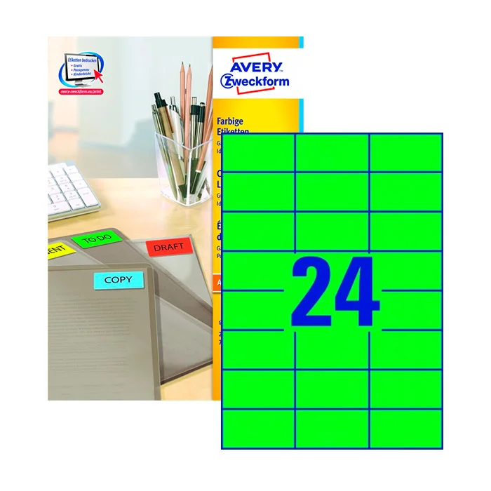 Этикетки самоклеящиеся Avery Zweckform 3450, зеленые, 70x37мм, 24шт на листе А4, 100 листов