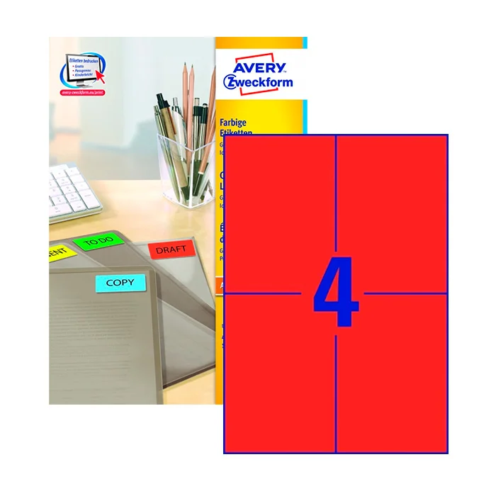 Этикетки самоклеящиеся Avery Zweckform 3456, красные, 105х148мм, 4шт на листе А4, 100 листов