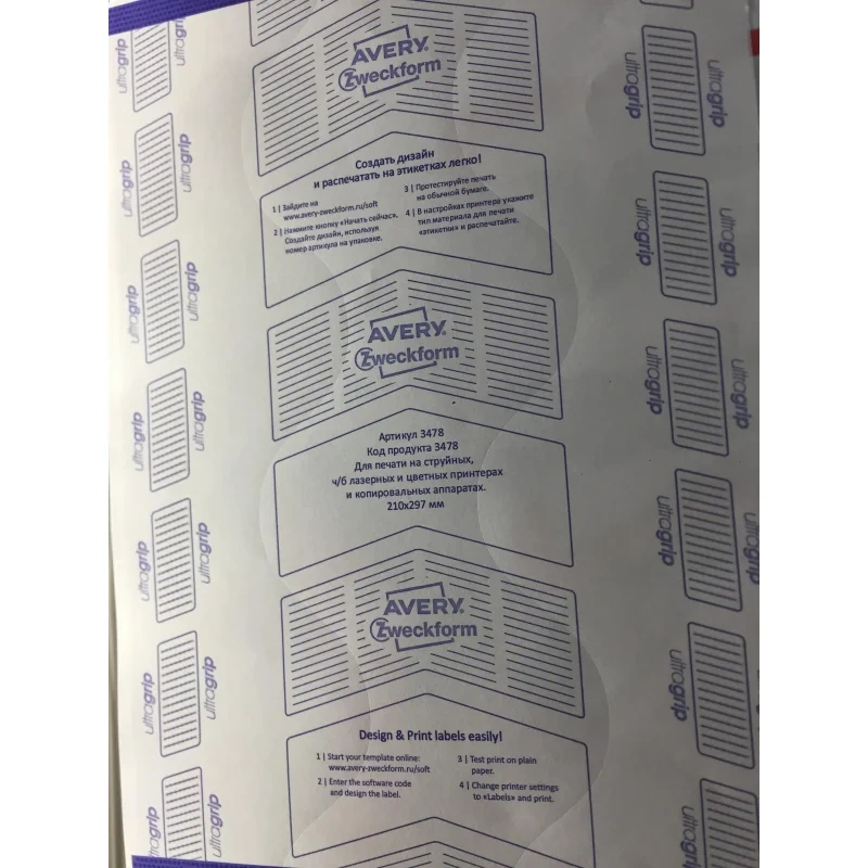 • Фирменное, свободно распространяемое, программное обеспечение и шаблоны для создания и печати самоклеющейся бумаги на принтере