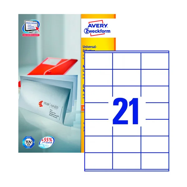 Этикетки самоклеящиеся Avery Zweckform 3481, белые, 70х41мм, 21шт на листе А4, 100 листов