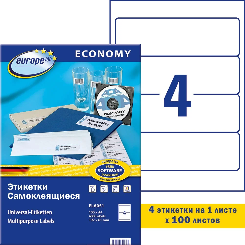 Этикетки самоклеящиеся Avery Zweckform Европа-100 ELA024, белые, 105x148.5мм, 4шт на листе А4, 100 листов
