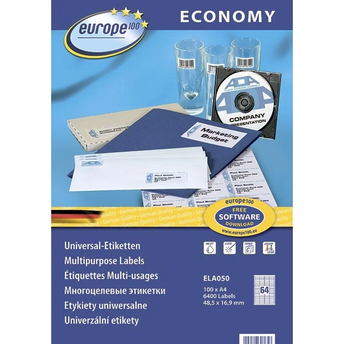Новые универсальные этикетки Европа-100 экономичной серии гарантируют высокое качество исполнения: идеальное решение для любых задач стандартной маркировки; легко оформить в Microsoft Word .