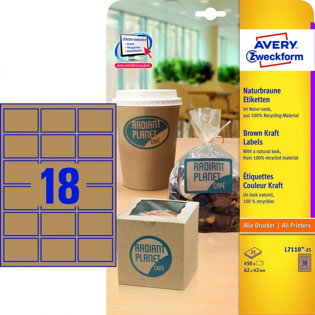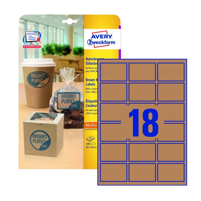 Этикетки самоклеящиеся Avery Zweckform L7110-25, коричневые, 62х42мм, 18шт на листе А4, 25 листов