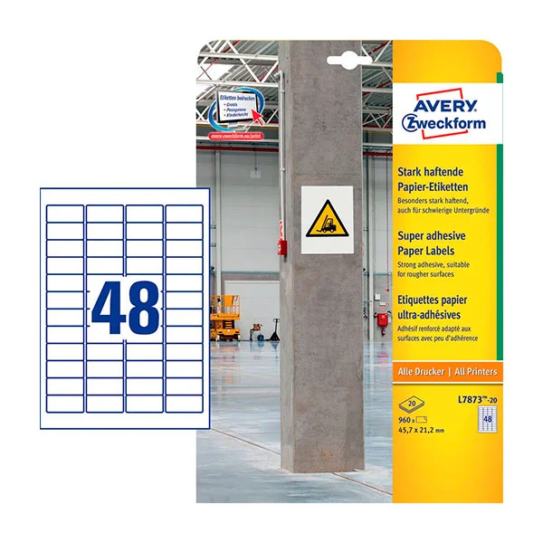 Этикетки самоклеящиеся Avery Zweckform L7873-20, белые, 45.7х21.2мм, 48шт на листе А4, 20 листов