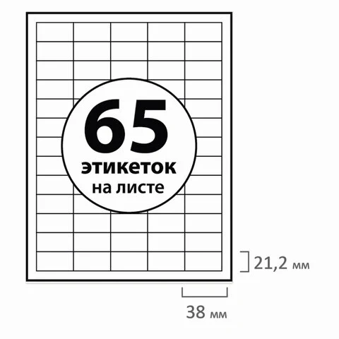 | Кол-во этикеток на листе | 65 шт |