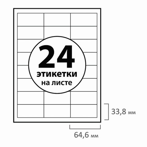 Этикетки самоклеящиеся Brauberg белые, 64.6х33.8мм, 24шт на листе А4, 50 листов