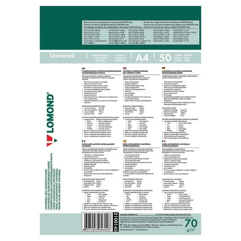 Белая суперкаландрированная многофункциональная самоклеящаяся бумага разработана для печати на всех видах струйных, лазерных принтеров и копировальных аппаратов с разрешением 720 dpi. Применяется для изготовления этикеток различного назначения на матричных, струйных, лазерных настольных, скоростных лазерных принтерах, копировальных аппаратах, пишущих машинках, офсетных и флексографических машинах.