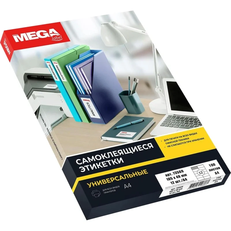 Самоклеящиеся этикетки ProMEGA Label изготавливаются из высококачественного сырья и подходят для работы в офисе с различными типами принтеров или на копировальных аппаратах. Подходят для использования на лазерных принтерах для печати больших объемов. Точная подача листов через принтер гарантирует беспрепятственное прохождение листов через принтер. Самоклеящиеся этикетки ProMEGA Label имеют высокую степень белизны. Благодаря специальной обработке поверхности этикеток, изображение не смазывается при печати. Этикетки ProMEGA Label выпускаются с акриловым клеем высокого качества, приклеиваются на бумагу, картон, пластик, стекло и др. поверхности. Рабочий температурный диапазон от минус 20 до плюс 120 градусов. Рекомендовано: при печати использовать настройки принтера "печать этикеток". Предварительно провести тестирование на поверхностях планируемых для использования этикетки. Не использовать на шероховатых и изогнутых поверхностях. ВАЖНО! Температура этикеруемой поверхности должна совпадать с температурой рабочей зоны. Соблюдение параметров рекомендованной относительной влажности. Перед аппликацией этикетку желательно кондиционировать, чтобы она "вылежалась" в течение суток в помещении с относительной влажностью 50 % и температурой 20 С. Этикеровка должна производиться в теплом помещении при плюсовых значениях температуры воздуха. После приклеивания этикетки необходимо выдержать 30 минут в том же помещении и только после этого возможна транспортировка в зоны с отрицательным температурным режимом. При хранении листы с этикетками не слипаются между собой. Выпускаются в упаковке 100 и 25 листов формата А4. Сферы применения - адресные наклейки на конверты, наклейки на товары, штрихкоды, ценники, предупреждения. Рекомендовано провести предварительное тестирование этикетки на предполагаемых к использованию рабочих поверхностях и оборудование для нанесения печати (принтер, копир и др.), которые будут использованы в рабочем процессе. Для оформления и печати этикеток удобно использовать шаблон. Для того чтобы увидеть разлиновку шаблона, необходимо в ПО Word открыть вкладку "Макет" и щелкнуть "Отобразить сетку". Для удобства работы с рисунками: выделить вставленный в шаблон рисунок левой кнопкой мыши, открыть вкладку "Формат" и выбрать режим "Обтекание текстом - По контуру". Также можно самостоятельно сформировать шаблон в ПО Word. Пошаговая инструкция по созданию этикеток в ПО Word: 1. Откройте текстовый редактор Word, в верхней горизонтальной строке рабочего окна щелкните стрелкой мыши "Сервис", в открывшемся перечне щелкните "Конверты и наклейки" (для Microsoft Word XP - "Письма и рассылки", а затем "Конверты и наклейки"). 2. В открывшемся окне "Конверты и наклейки" щелкните "Наклейки", затем в перечне справа щелкните "Параметры". Выберите тип принтера и вариант подачи бумаги. 3. В окне "Параметры наклейки" щелкните "Создать". Появится окно, в нижней части которого - окошки для данных о выбранной вами этикетке. 4. Введите данные об этикетках: величину верхнего поля, боковых полей и т. д. В окошке "Тип" введите размер этикетки или название, которое вы ей присвоите. (Указанные параметры можно узнать в инструкции, идущей в комплекте с этикетками.) Завершите настройку щелчком "ОК". Данные для печати этикеток в ПО Word: Размер этикетки, см: 10,5x14,8; Кол-во этикеток на листе: 4; Верх