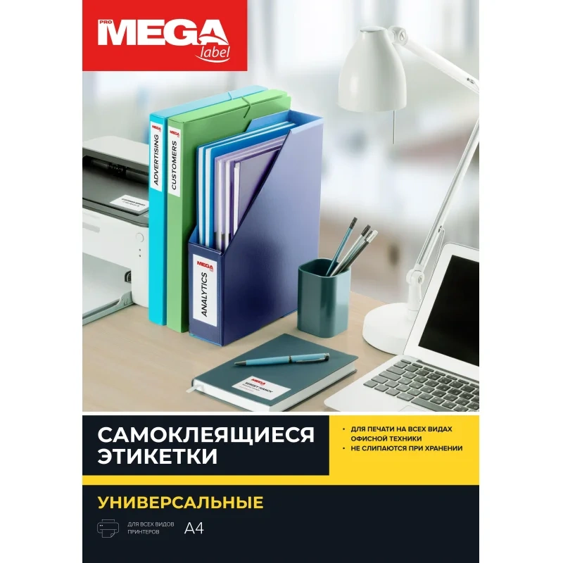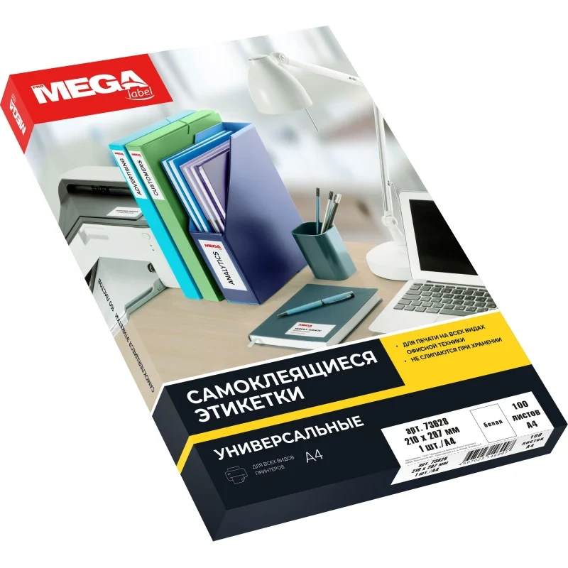Этикетки самоклеящиеся Pro Mega Label 210х297мм, белые, 100шт, 70г, белая