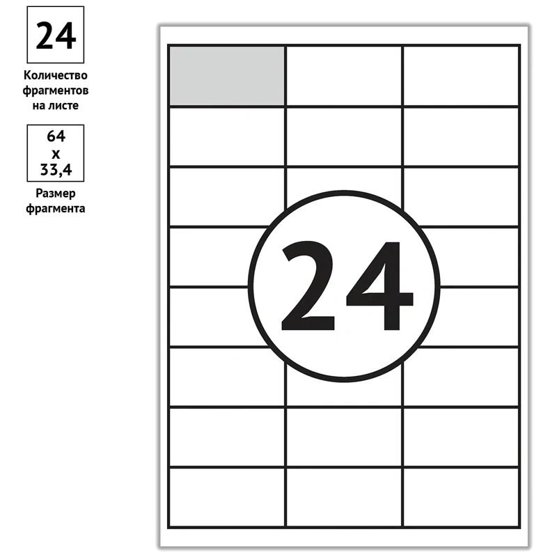 Этикетки самоклеящиеся Officespace белые, 64х33.4мм, 24шт на листе формате А4, 100 листов