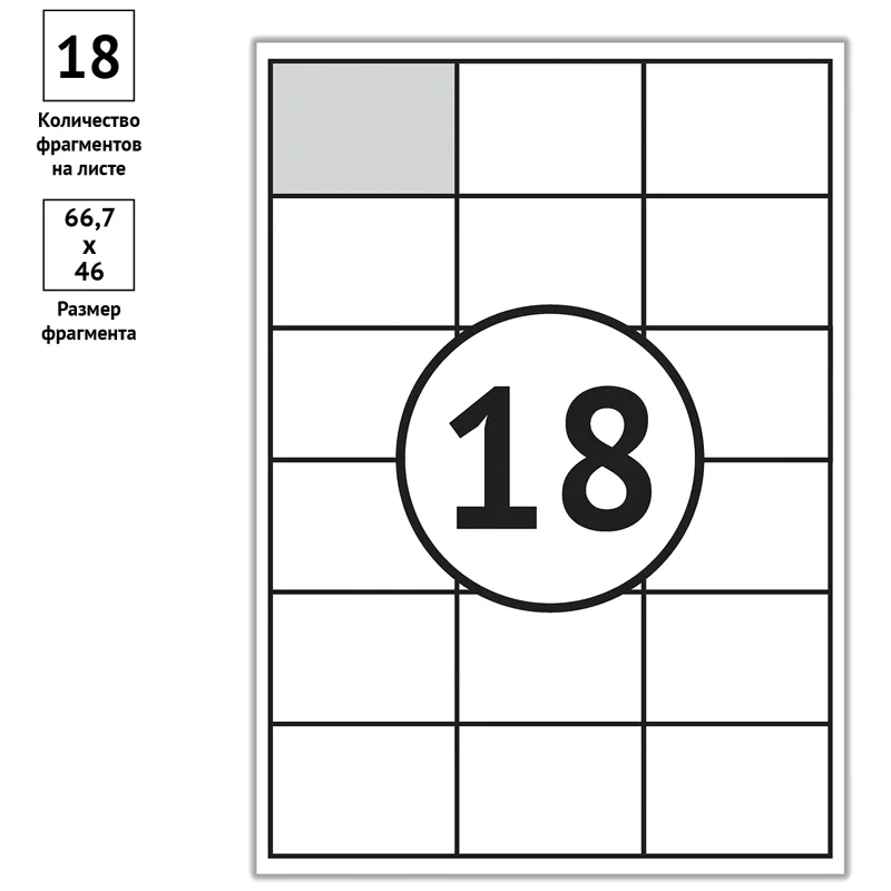 Этикетки самоклеящиеся Officespace белые, 66.7х46мм, 18шт на листе формате А4, 100 листов