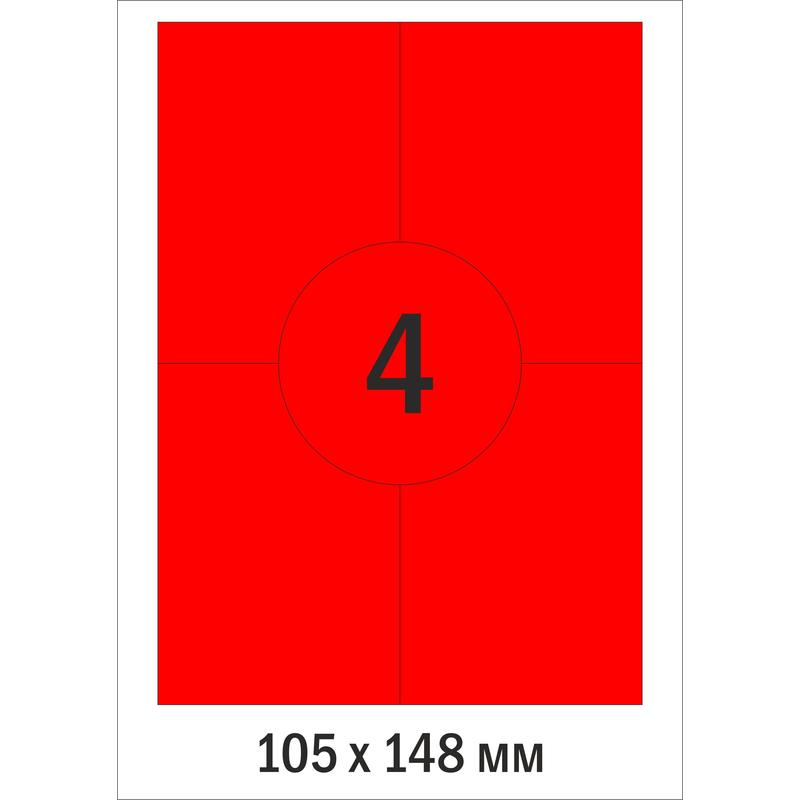 Этикетки самоклеящиеся Pro Mega Label 105х148мм, красные, 4шт на листе А4, 100 листов